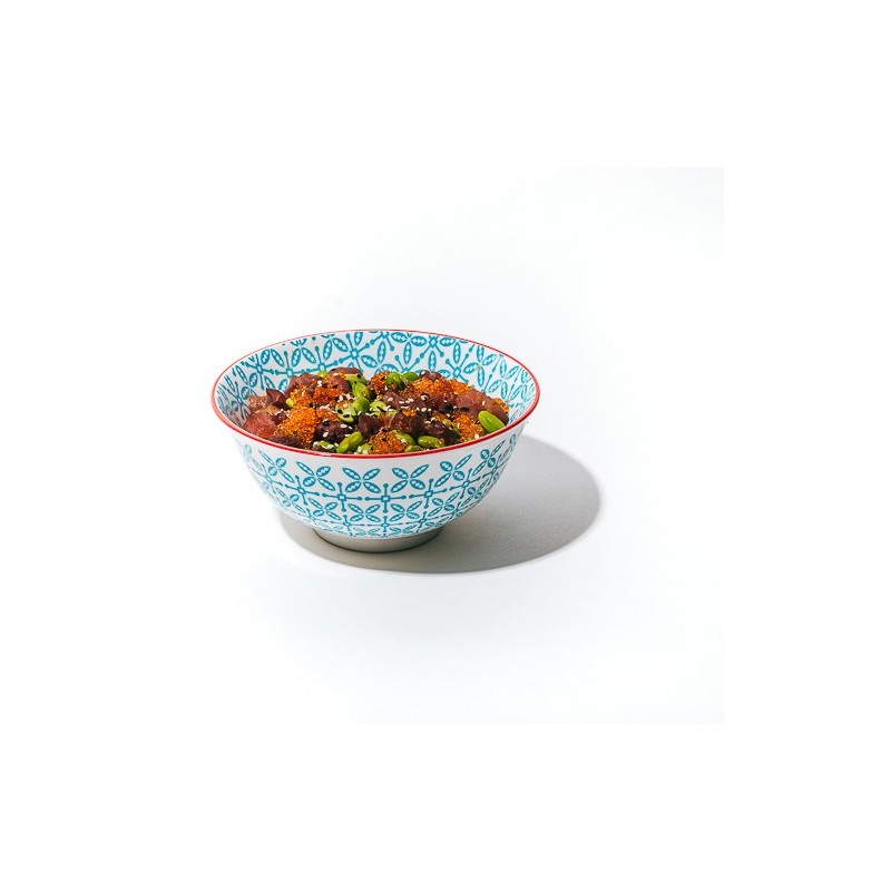Bowl of vinegar rice with salmon, Wakame, edamame