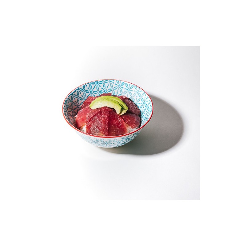 Bowl of vinegar rice with tuna, Tobiko, edamame
