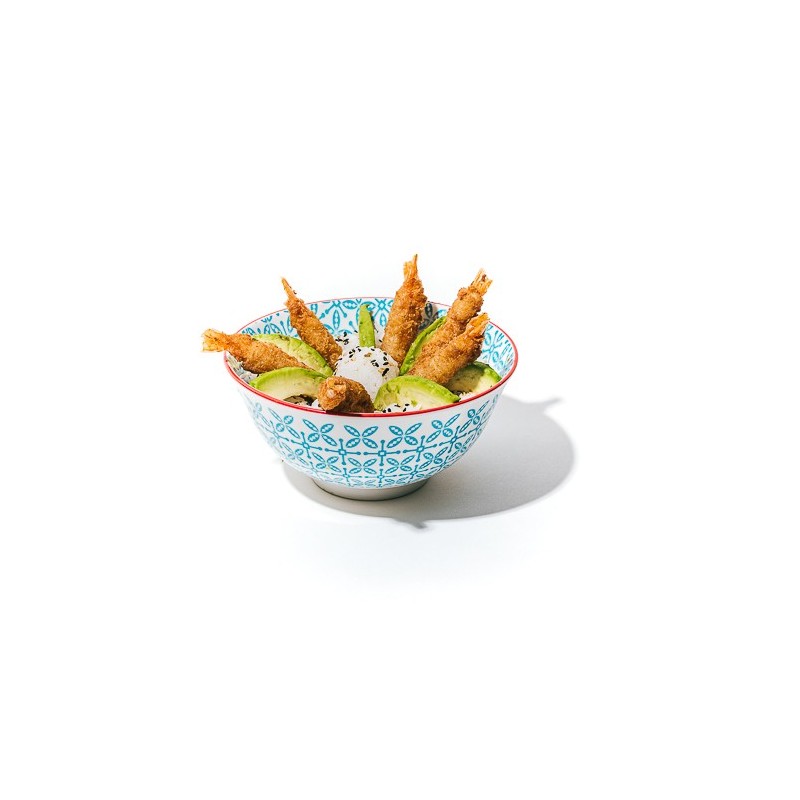 Bowl of vinegar rice with tuna, Tobiko, edamame
