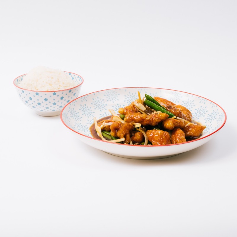 Accompagné d'un riz blanc