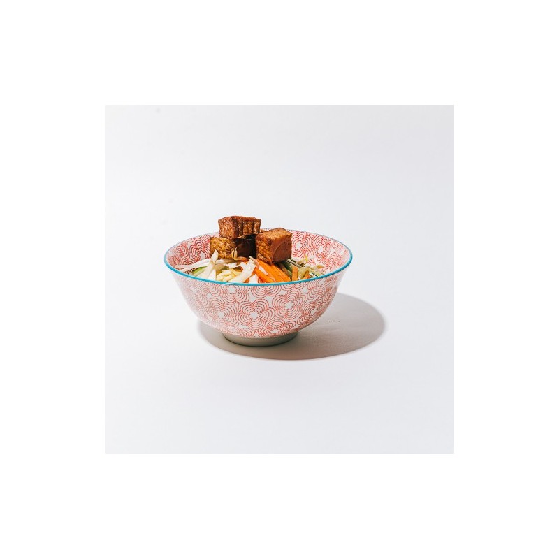 Véritable bouillon vegan à base de pâte de Miso. Accompagné de Pak Choi, Oeuf, Champignon Kikurage, Légumes et Poulet